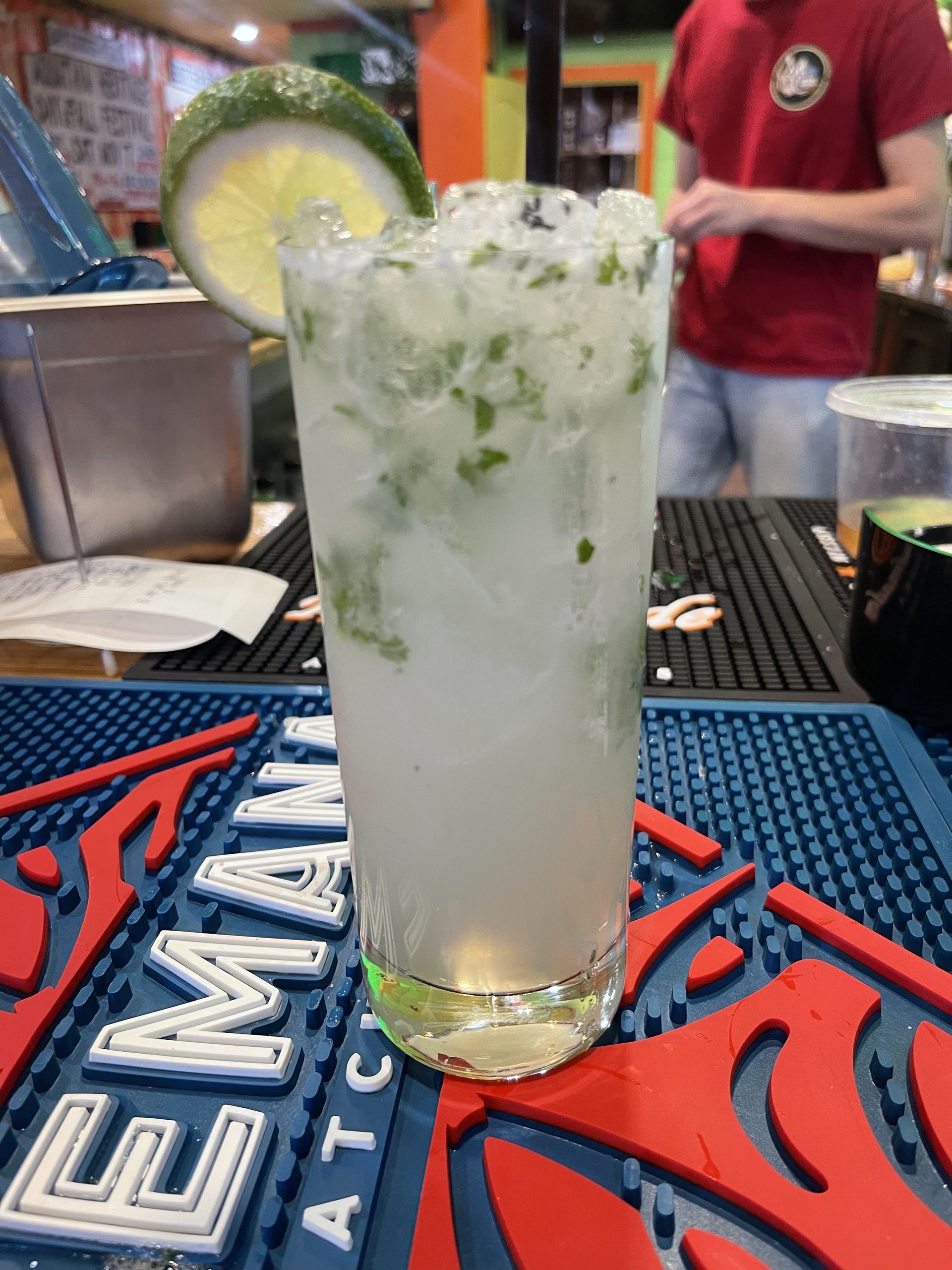 A refreshing blend of rum, muddled mint leaves, lime juice, simple syrup, and soda water, a perfect balance of sweetness and citrus.