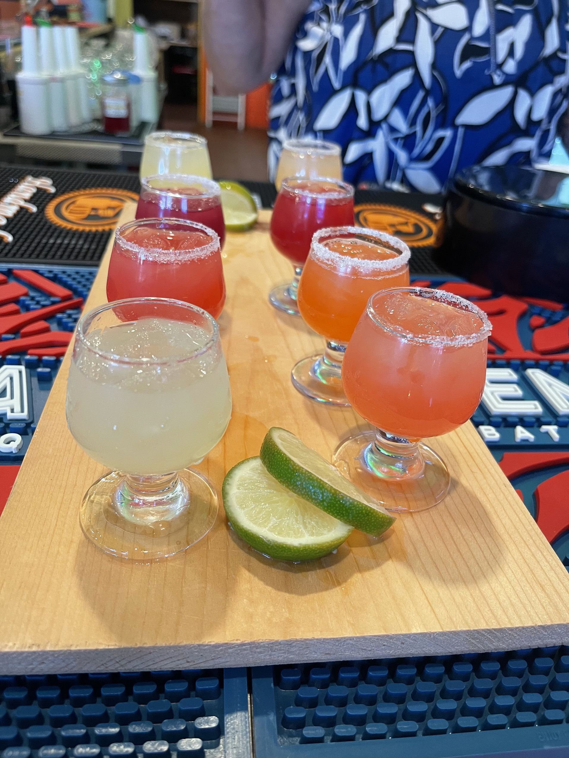 Get our Taster Flight with a classic and all 7 flavored Margarita’s
